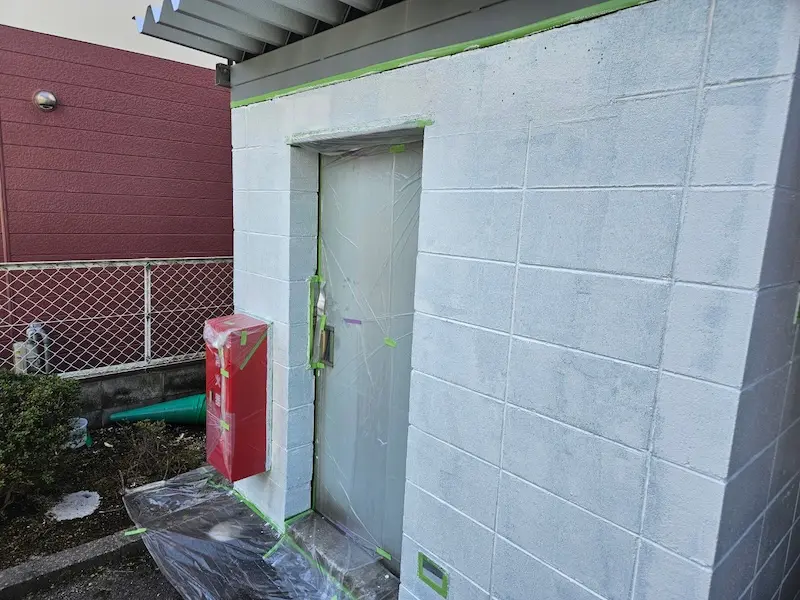 大阪府摂津市|コンクリートブロックの下塗りを行いました