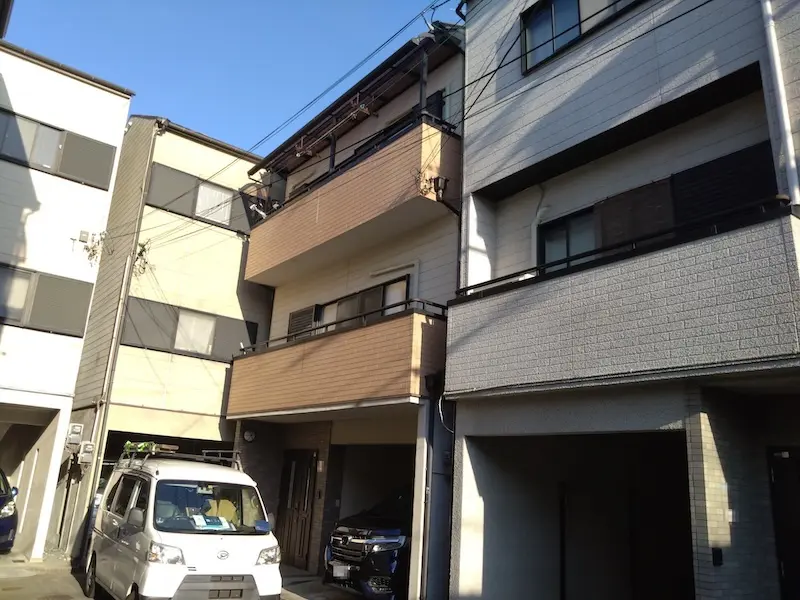 Y様邸では隣接するお家との距離が近く、足場の設置スペースが限られていました。
