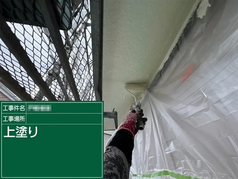 塗装していると塗料が垂れてきてしまうため、周りが汚れないように養生してから塗装します。