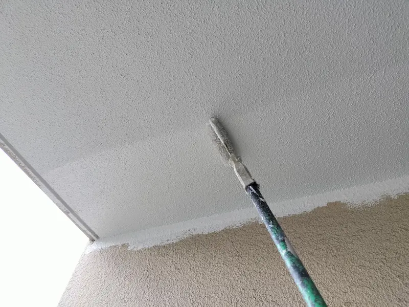 延長棒にローラーを取り付けて高いところを塗装