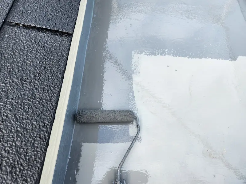 ウレタン防水はそのままだと紫外線にすぐに傷んでしまうため、トップコートを塗って保護します。