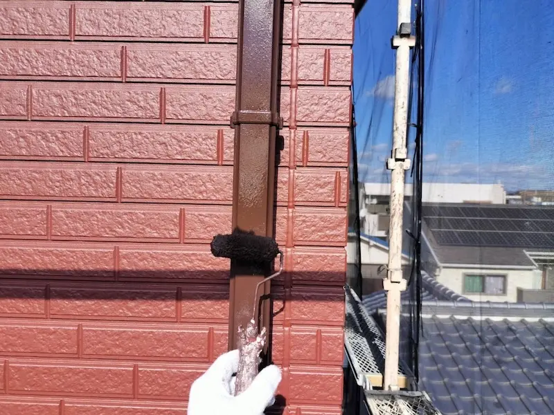 縦樋は外壁と一体感が出るように類似する色で塗装しました。