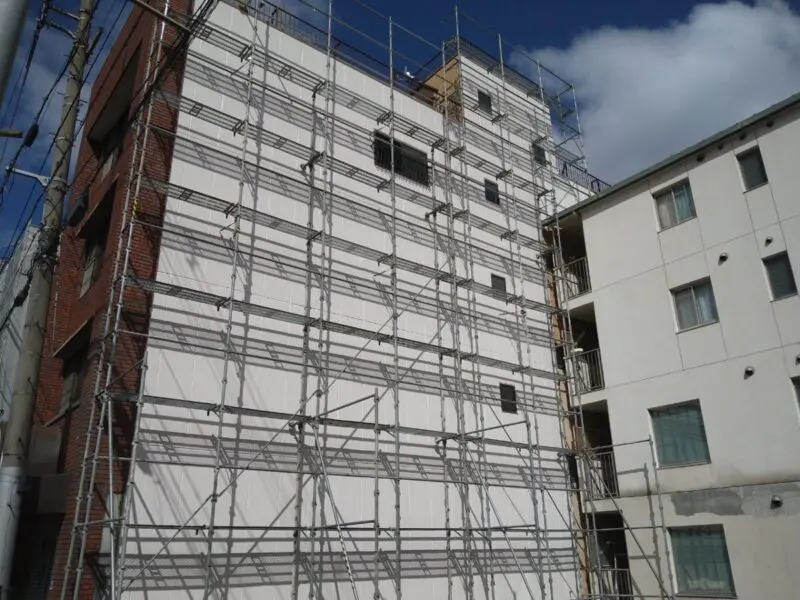 京都市のビル外壁修繕工事|外壁へフィラー塗布を行いました