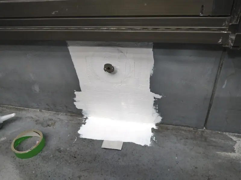 最後に脱気筒の取り合い部は隙間ができるため、それをなくすためにコーキングで防水処理していきます。