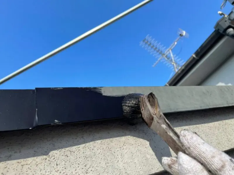 外壁と屋根の取り合い部には隙間ができてしまい水が入ってしまうため、雨押さえを取り付けて防水しております。