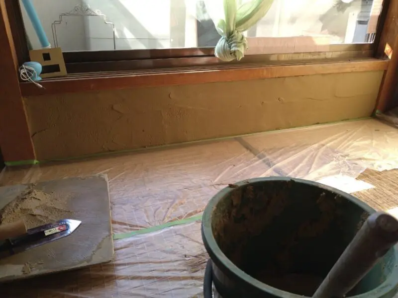 上の写真は余分な聚楽を剥がしてから表面を平滑にした状態です。
