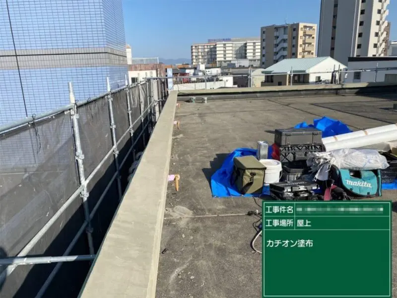 パラペットや立ち上がりのところの下塗りを行いました。