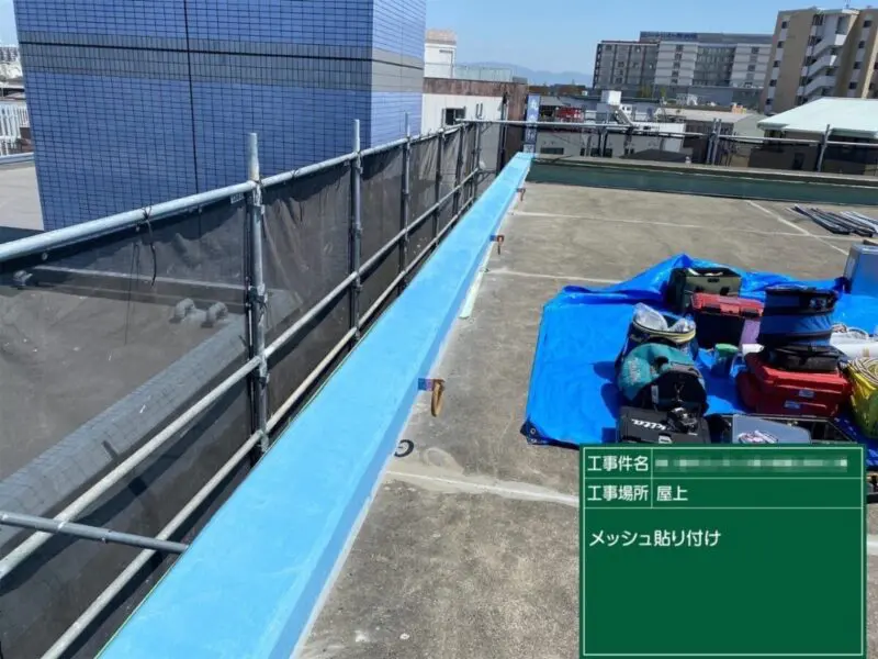 大阪府大阪市 ビル屋上防水工事 メッシュシート張り〜Uマット敷設