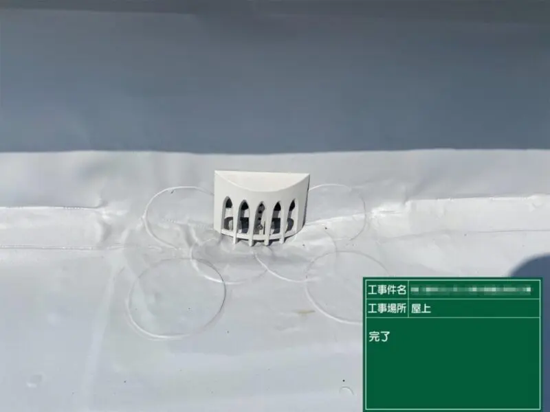大阪府大阪市のビル屋上防水工事にて、ドレンと脱気筒の取り付けを行いました。