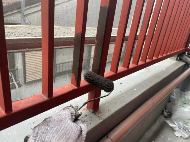 手すりの下地処理と錆止め塗装ついてはこちらの「現場レポート:大阪府大阪市 ベランダ手すりの錆止め塗装を行いました」でお伝えしております。