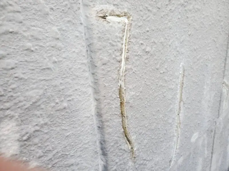 外壁内部にまでヒビが入っているため補修するときは一部外壁をカットしてモルタルやシーリング剤などを充填して直します。