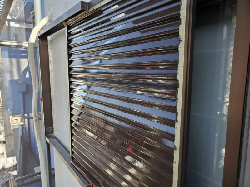 大阪府吹田市の現場にて、本日はルーバー雨戸の中塗り〜上塗りの作業をお伝えします!前回の現場レポートはケレンと錆止め塗装の作業をお伝えしました。