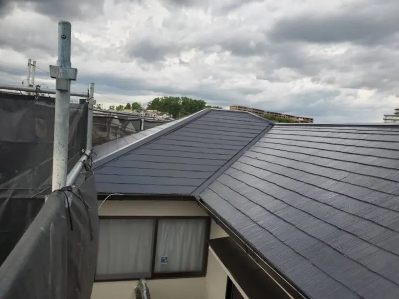 美しく仕上がりました!屋根に色ツヤが戻ると建物全体が引き締まって見えます。屋根塗装は足場を組みますからコスト節約に外壁塗装と一緒にご検討ください。