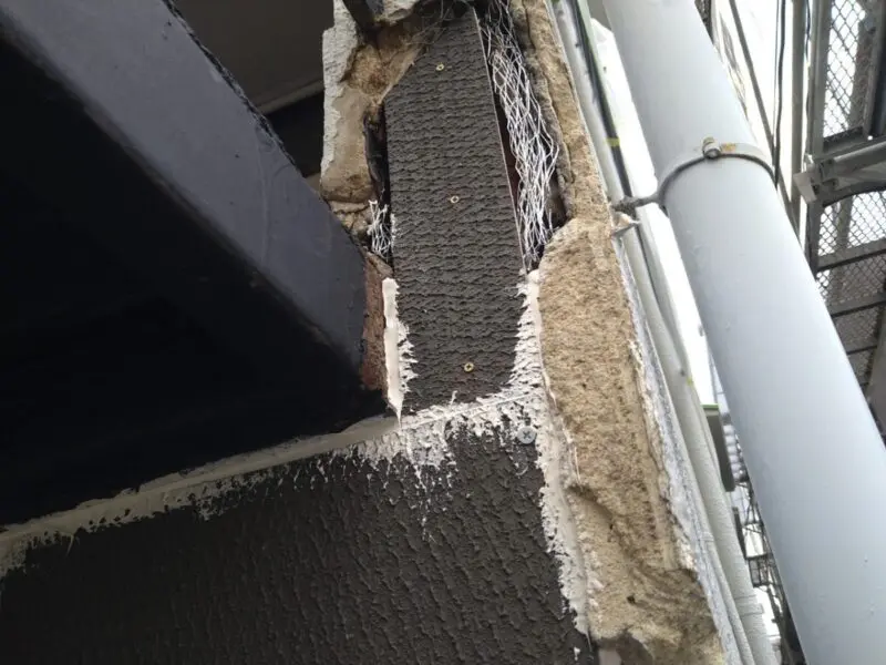 大阪府高槻市 外壁塗装工事 モルタル外壁損傷部 ラスカット下地張り〜モルタル補修