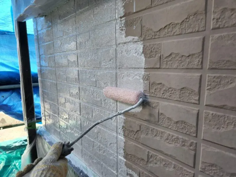 下塗りにはシーラーを塗りました。窯業系サイディングは蓄熱するため、弾性塗料を使用すると塗膜が膨れてしまいます。下塗り剤にも下地の相性があり、間違った材料を選んでしまうと施工不良を起こしてしまいます。