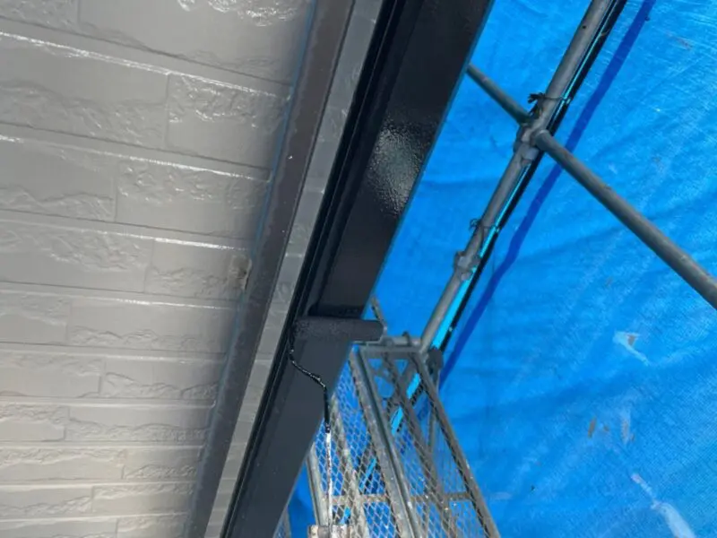 雨樋はブラックで塗装しました。雨樋を含め付帯部は建物のアクセントになります。外壁や屋根に意識が向いてしまうかもしれませんが、付帯部の色も外観のバランスを考えて選びましょう。