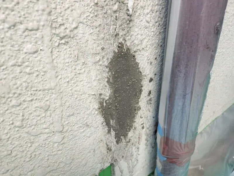こちらでは外壁が一部剥落していたため補修を行いました。損傷しているところを残すと後々不具合を起こす可能性がありますので、塗装前に必ず補修を行う必要があります。