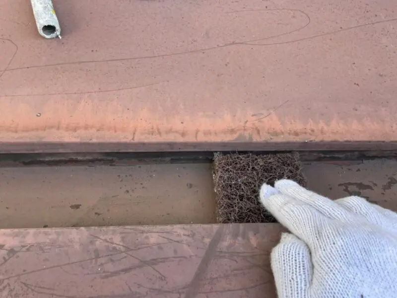 屋根の下には防水紙が張ってありますが、屋根が鉄なので、錆びると朽ちてしまい、防水紙の劣化を早めることになってしまいます。