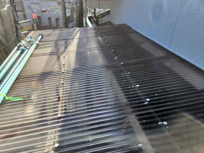 大阪府寝屋川市の外壁塗装工事にて、本日はベランダ屋根の波板張替えの作業をお伝えします!