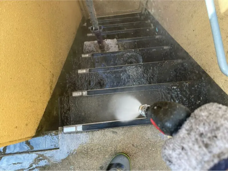 【階段の防水工事 高圧洗浄】