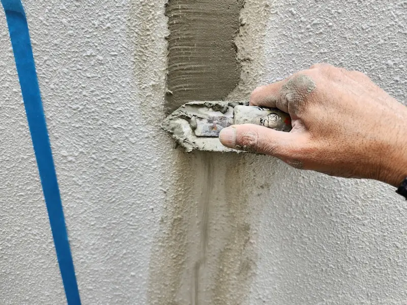 大阪府摂津市 屋根塗装・外壁塗装・防水工事 外壁のクラック補修 コーキング充填〜モルタル塗り