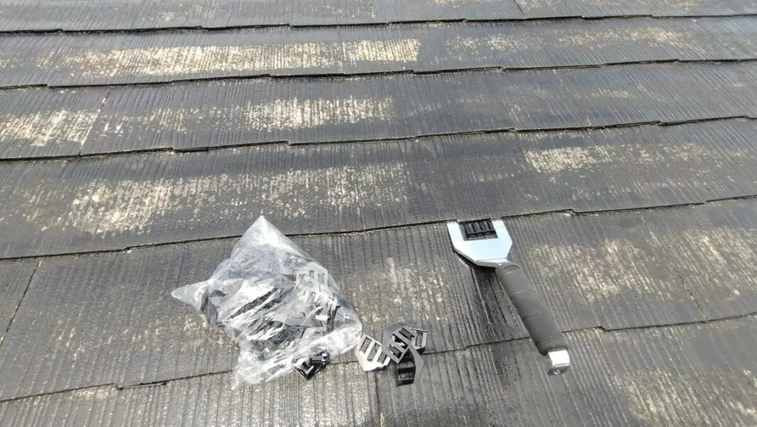 【スレート屋根の縁切り タスペーサー設置】
