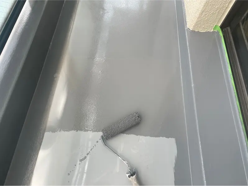 ウレタン防水を塗布したら、最後にトップコートを塗って仕上げます。