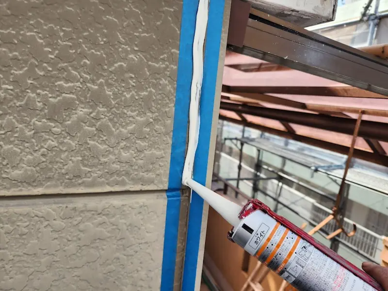 コーキングを撤去したら養生、プライマー下塗りと進めます。