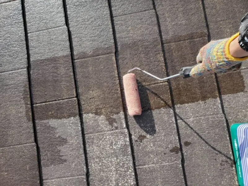 大阪府大阪市のI様邸にてスレートのひび割れ補修とシーラー塗布を行いました。